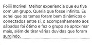 O grupo de escrita terapêutica é uma experiência imersiva de 30 dias dedicada ao autoconhecimento por meio da escrita. Durante esse período, os participantes receberão, diariamente, orientações de escrita voltadas a temas específicos, trabalhados ao longo de cada semana e ao final, de cada semana, haverá um encontro ao vivo, proporcionando um espaço para trocas, esclarecimento de dúvidas e uma aula aprofundada sobre o tema abordado na escrita.